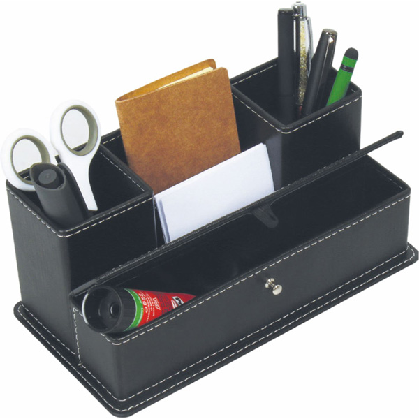 Siyah Suni Deri Masa Kalemliği 10 X 12 X 22,5 Cm
